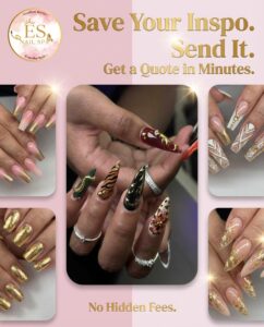 We specialize in intricate, trending nail designs. Just send us a photo, and we’ll confirm the price upfront—no surprise fees.
